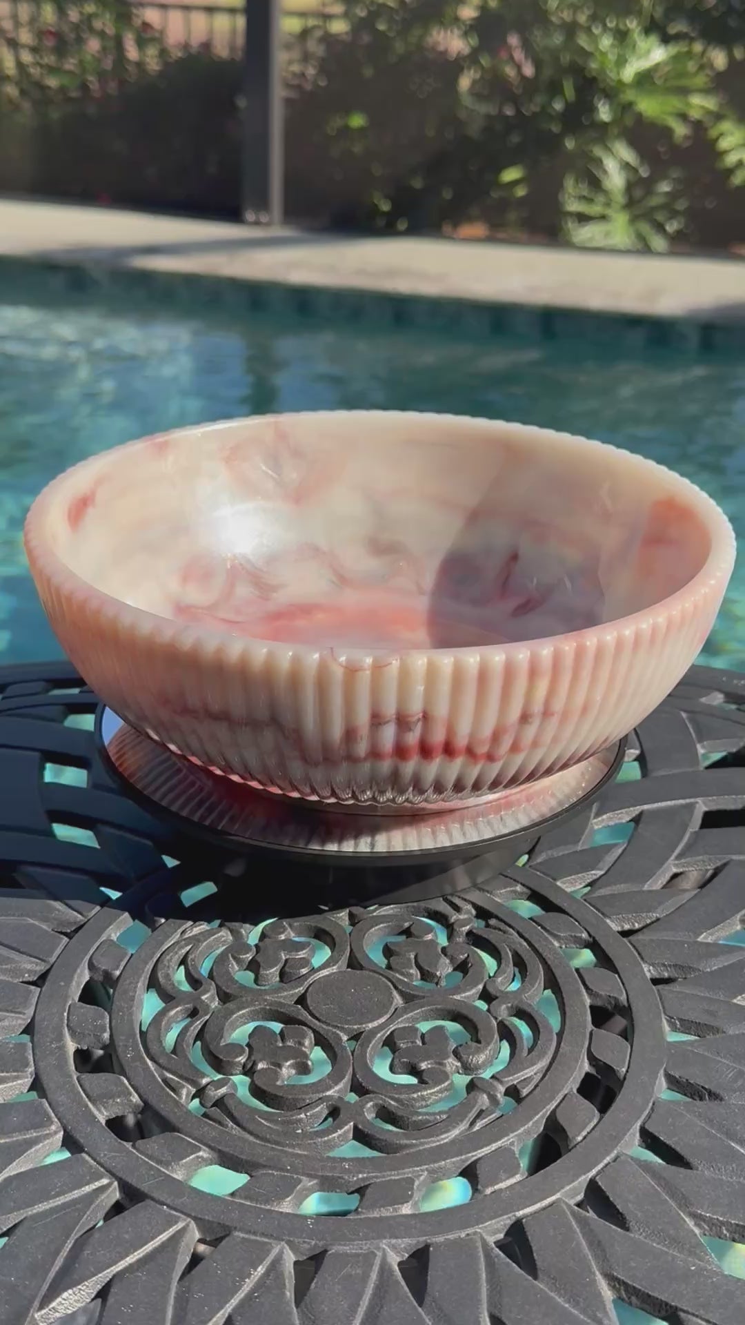 This resin bowl captures the layered beauty of natural agate with soft swirling colors and translucent depth. The piece is lightweight and functional, offering the luxury of stone without heaviness.