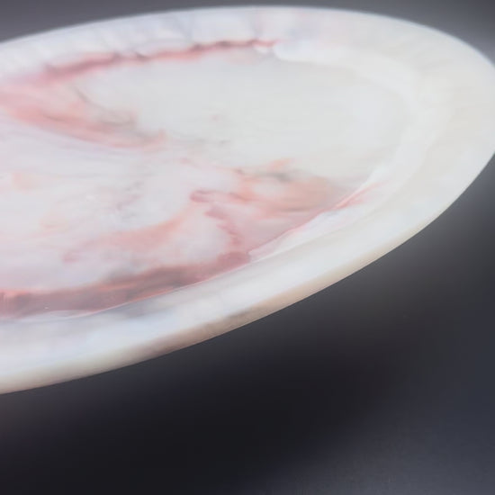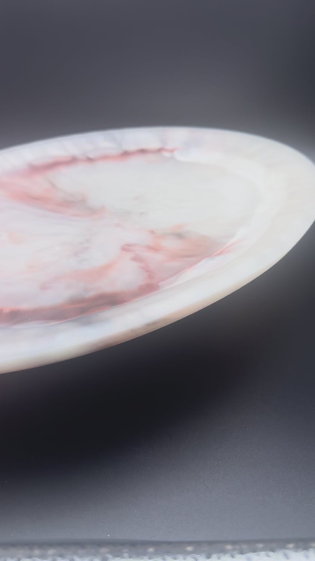 Handcrafted Alabaster / Marble Inspired Platter - Large White and Coral Resin Platter for Home Decor