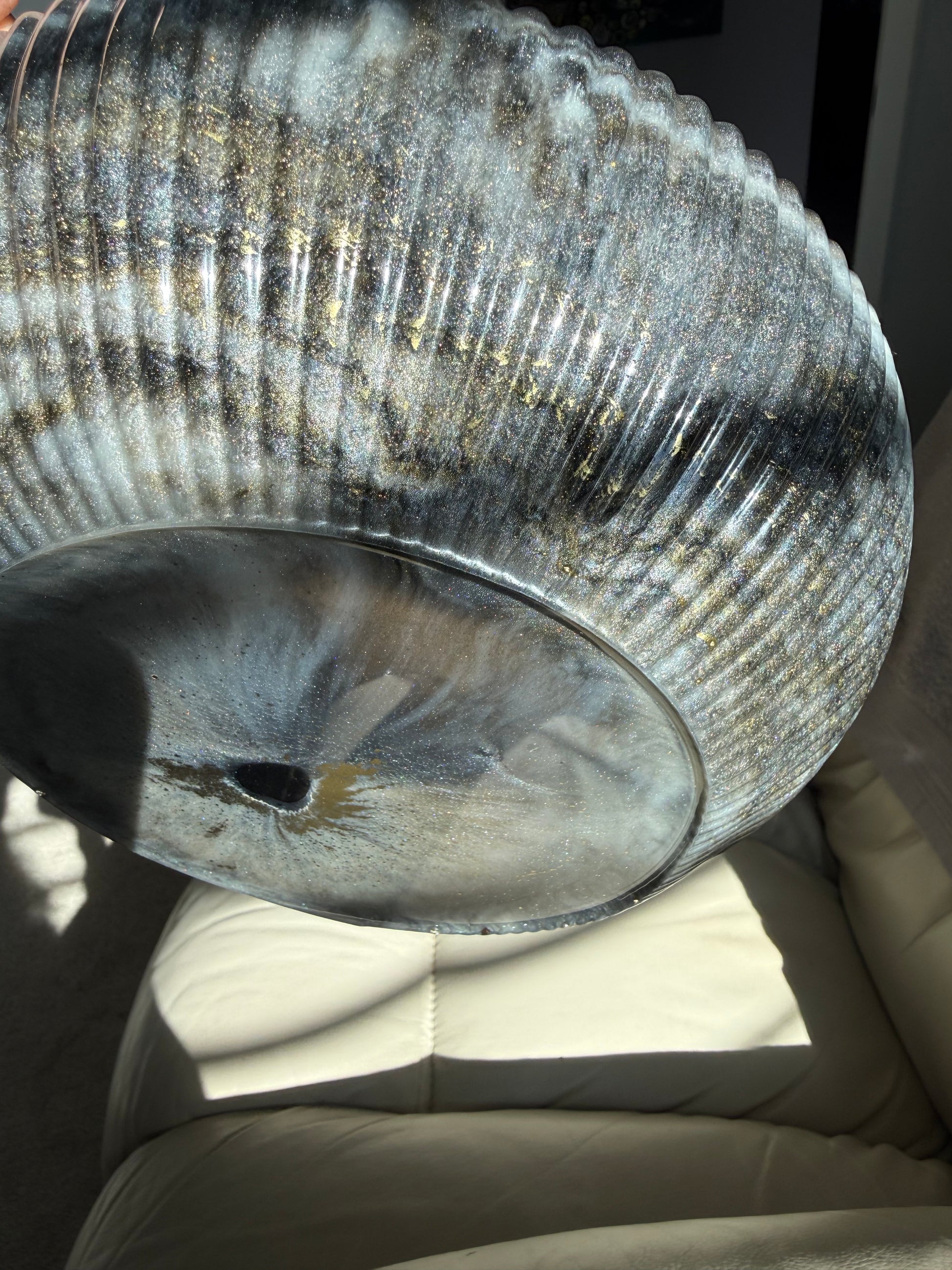 This Agate resin bowl blends grey, ivory, and gold hues into one organic masterpiece with antique gold accents. Lightweight yet durable, it’s both functional and artful. The bowl is 9.75” in diameter x 3.25” in height. It weighs 1lb