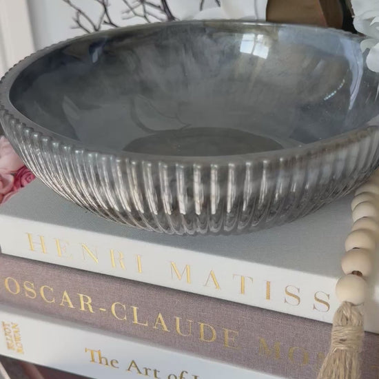 Luxe gloss-finish serveware, hand-poured resin bowl. Beautiful neutral colors inspired by banded agate stone.