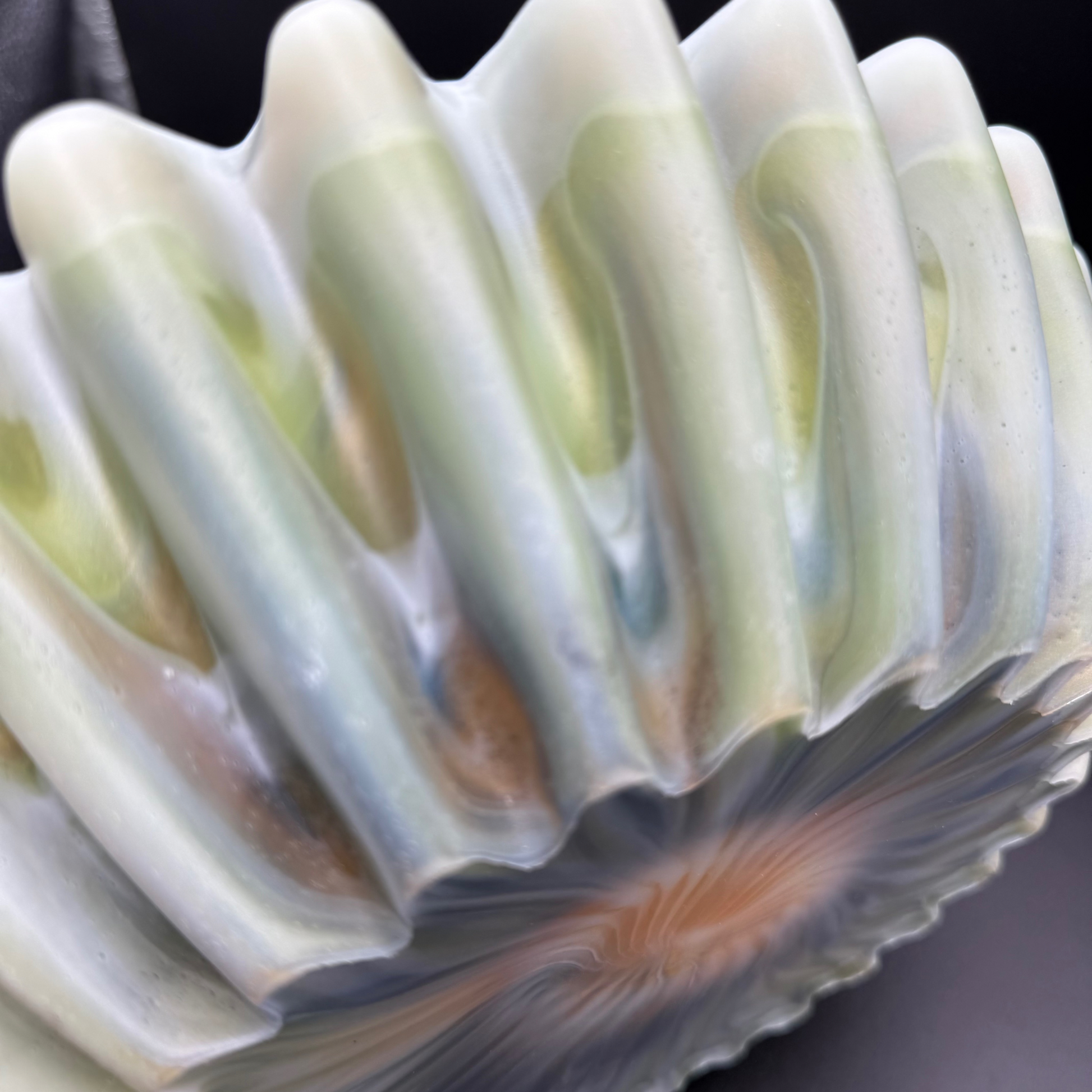 Elegant Pleated Resin Bowl in Light Amazonite Tones - Seafoam Greens- Unique Handmade Home Decor Accent and Serveware