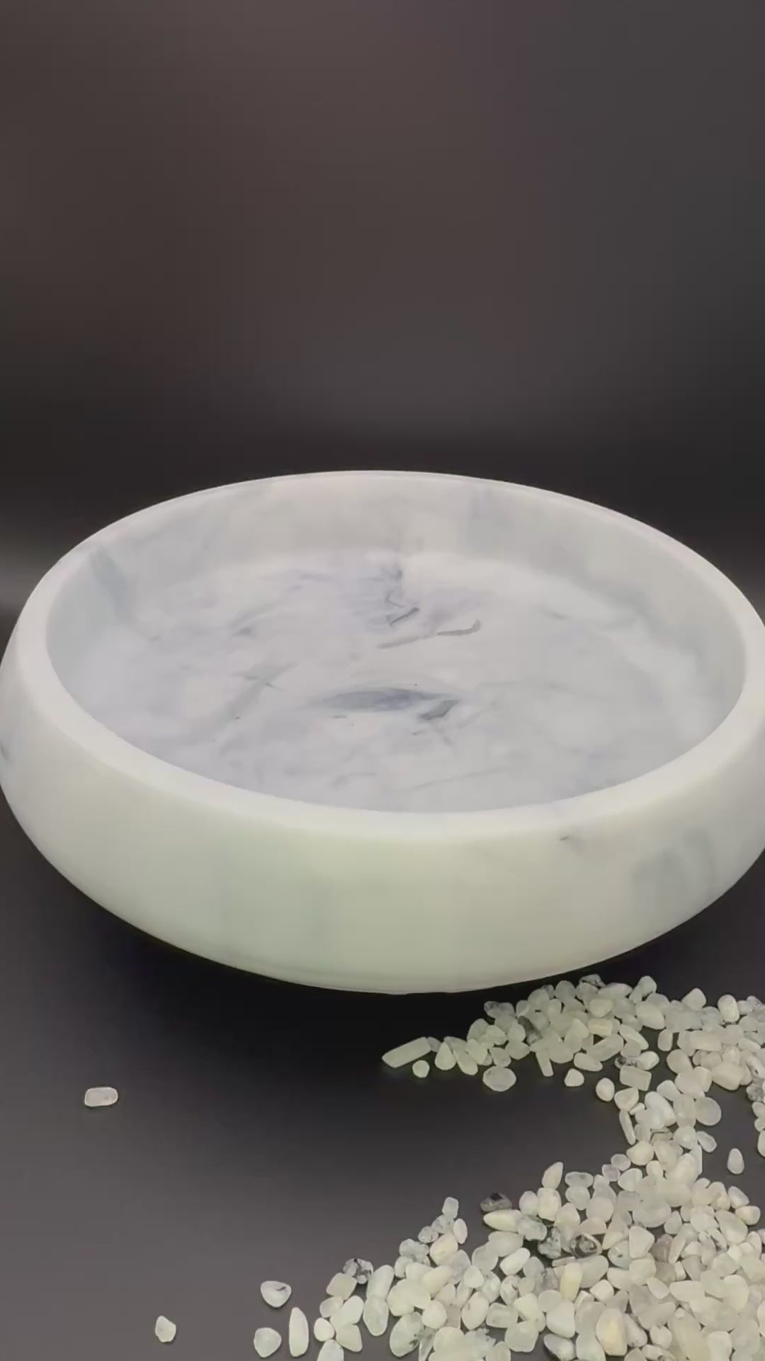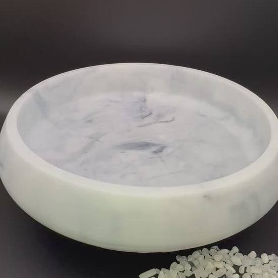 Marble Inspired Large Bowl - Handcrafted White and Gray Resin Bowl