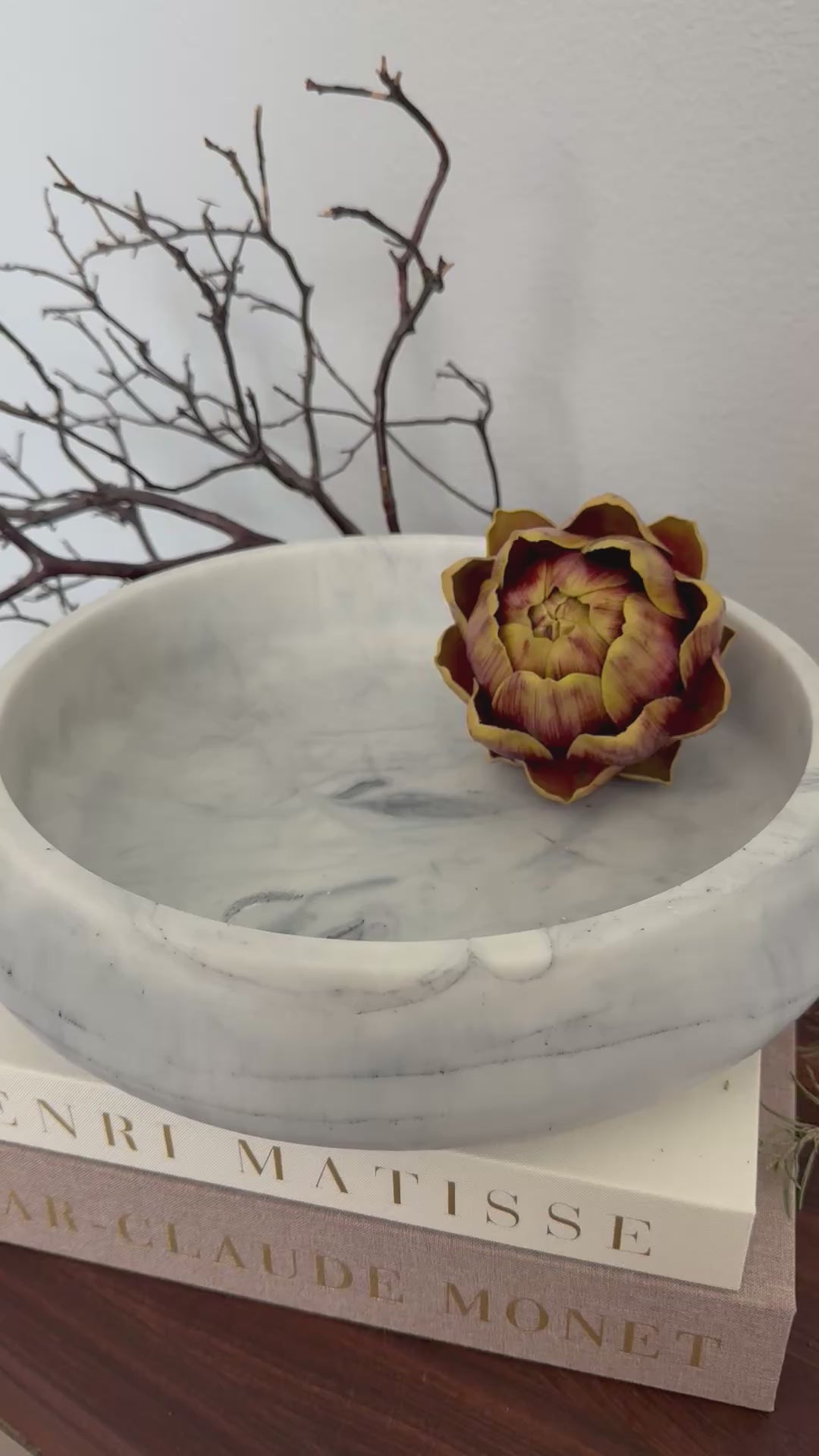 Inspired by the soft, organic elegance of natural marble, this handcrafted bowl captures the timeless look of carved stone—without the weight, porosity, or fragility of real stone or concrete. Each piece is individually poured and finished by hand, creating subtle variations that make every bowl one of a kind.