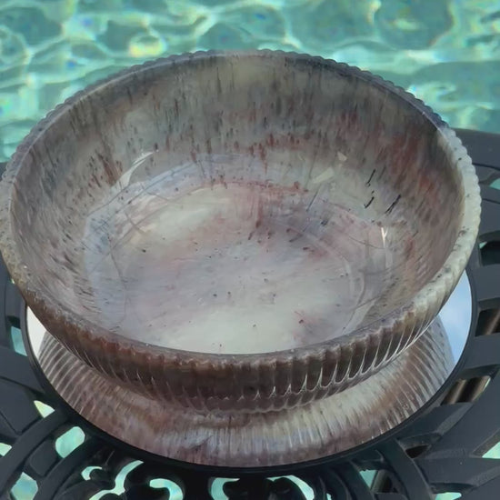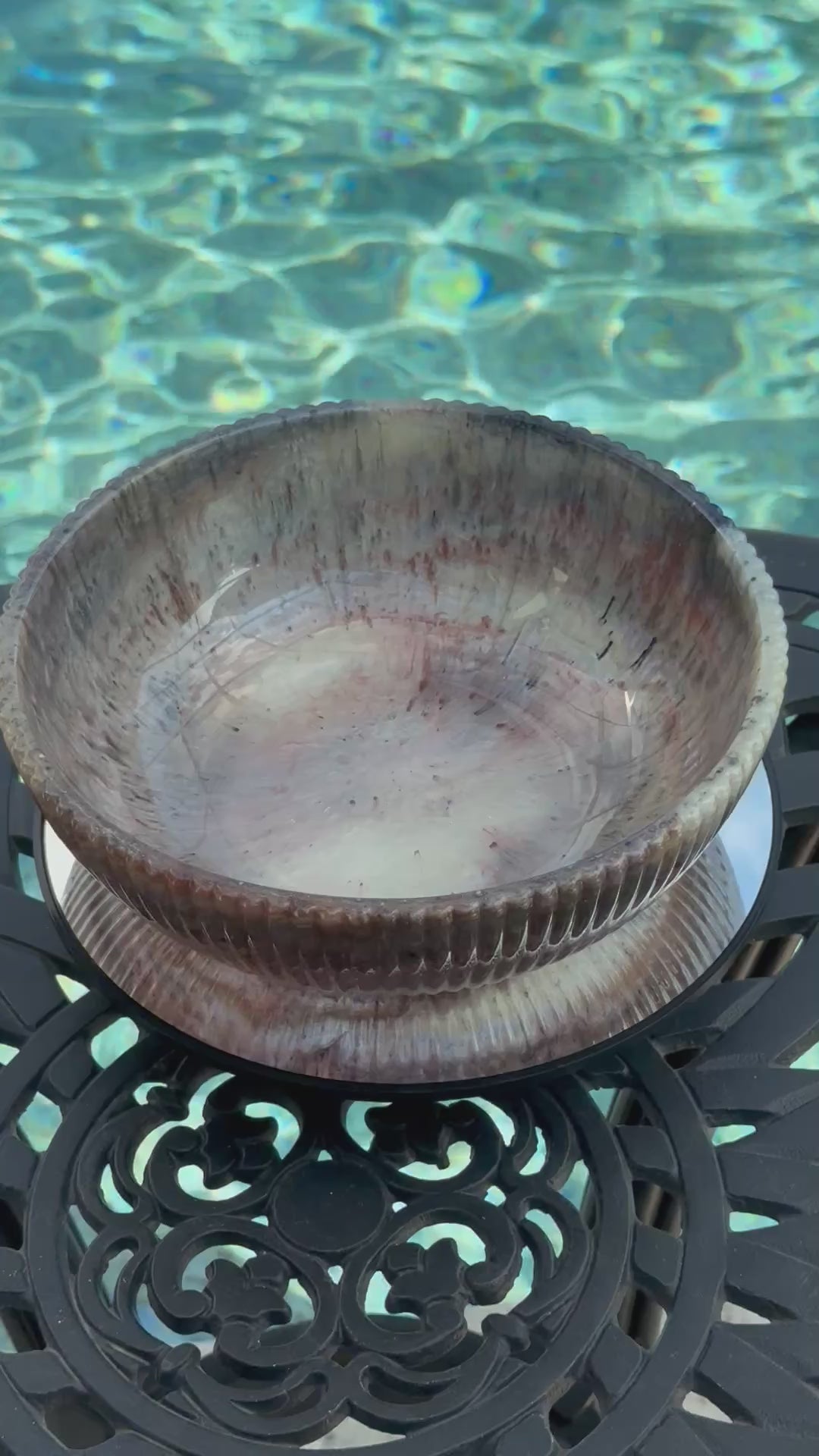 This resin bowl captures the layered beauty of natural agate with soft swirling colors and translucent depth. The piece is lightweight and functional, offering the luxury of stone without heaviness. The bowl is 7.75” in diameter and 2.5” in height. It weighs 13 oz.