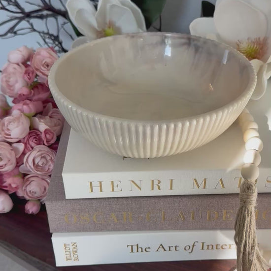 Medium Elegant Alabaster Inspired Resin Bowl for Stylish Serving